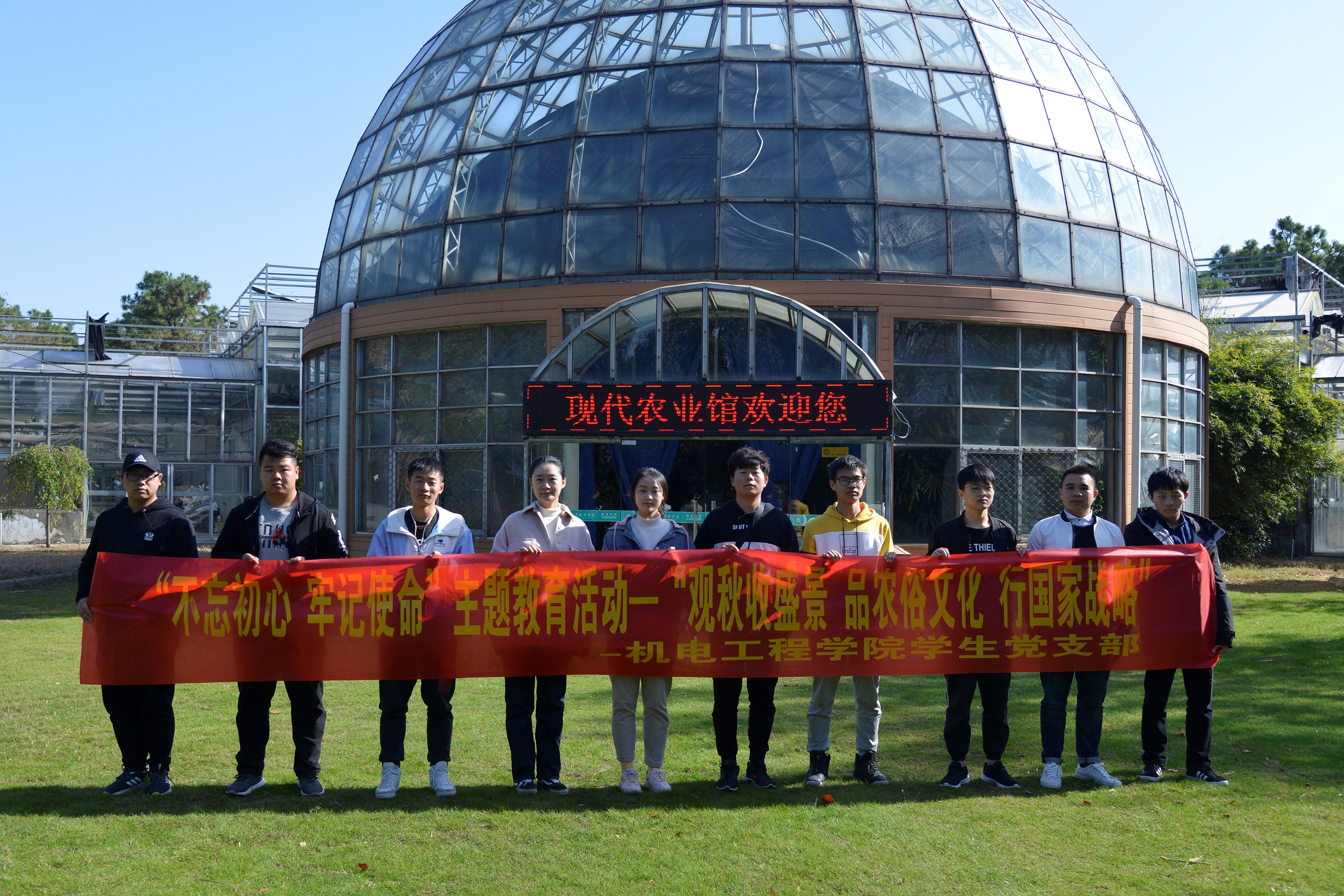 为深入推进“不忘初心 牢记使命”主题教育,引导学生关注“三农”,助力乡村振兴,11月20日,机电工程学院学生党支部师生赴农博园开展“观秋收盛景 品农俗文化 行国家战略”教育活动。