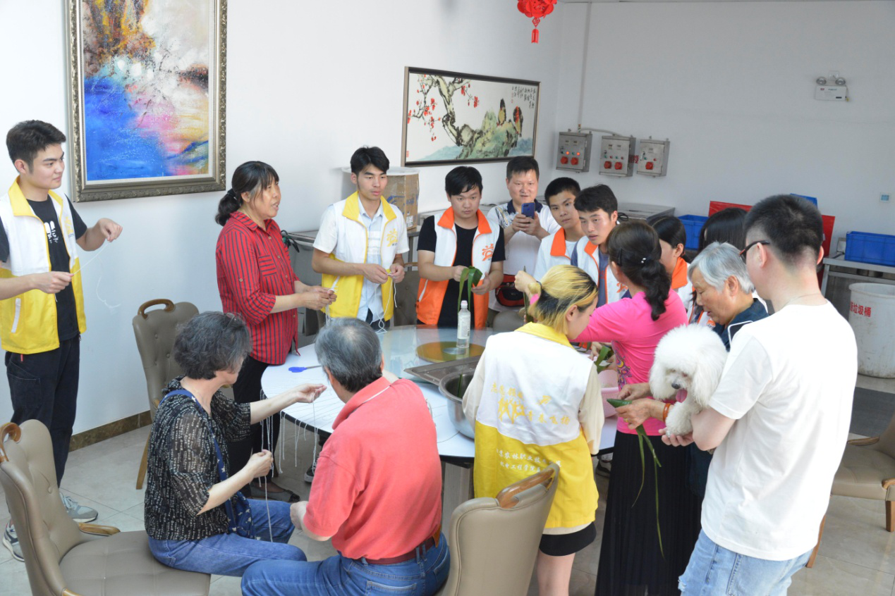 下午2点,志愿者们到逸仙养老院,院负责人对志愿者们的到来表示了热烈的欢迎和感谢。首先志愿者们和老人们一起包粽子,向他们学习裹叶子、填糯米、扎线,小小粽子,满满的爱。随后我们来到老人们的家,了解老人们的需求、询问老人的身体及生活情况。老人们也亲切地和志愿者们聊起家常,特别的开心。