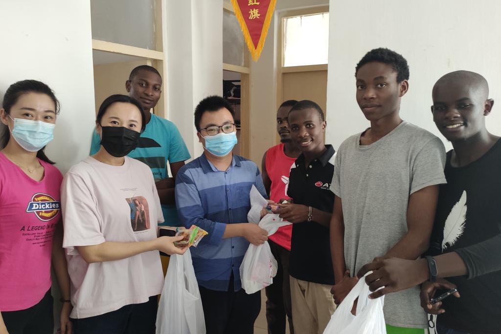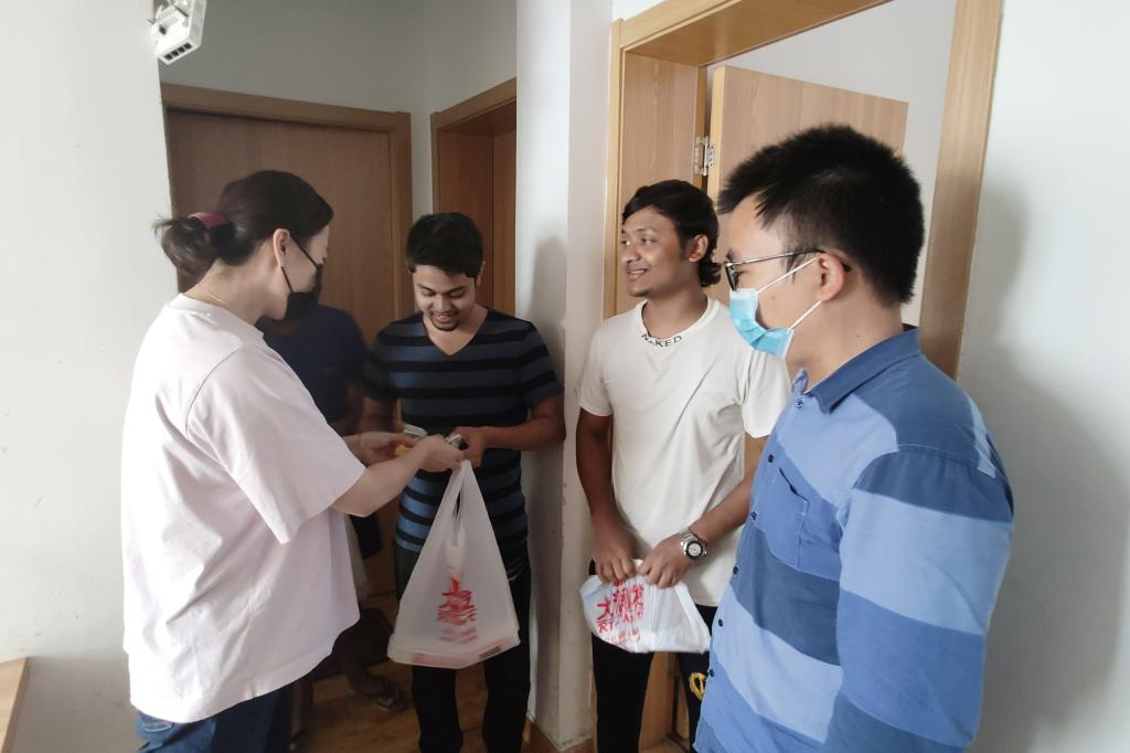 10月1日中秋佳节,机电工程学院党总支副书记李杨带领几位留学生班主任,深入18、19级留学生宿舍,为学生送去了节日的问候和礼物,让“独在异乡为异客”的留学生们感受中国传统节气的氛围,同时收到了温暖的关怀。