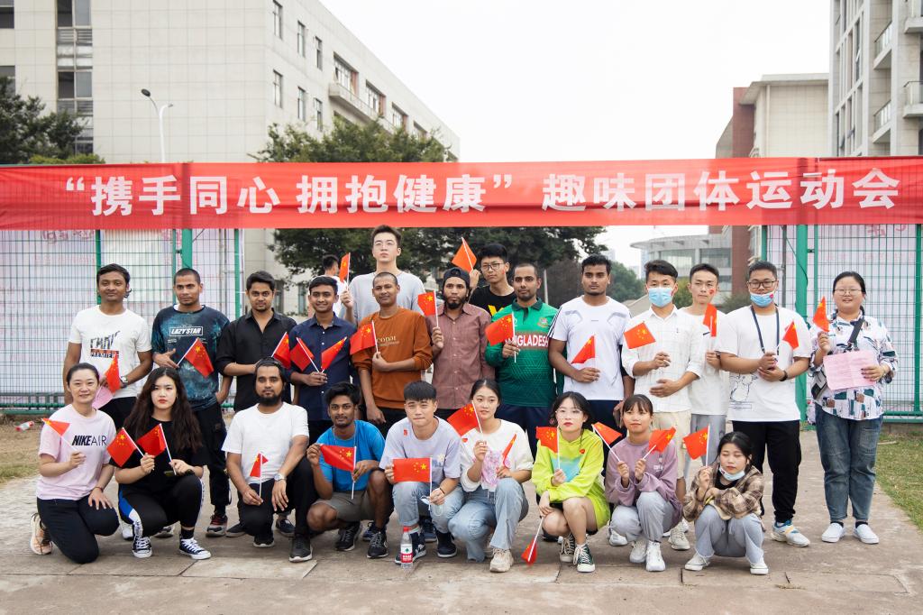 10月2日,机电工程学院团委在运动场举办了一场别开生面的“携手同心拥抱健康”趣味运动会,留学生们也受邀参与,组队与中国学生同场竞技,趣味折返跑、蒙眼投球、同心鼓、六人七足等项目,让大家得到了充分的锻炼。比赛中,留学生们展现了非凡的团队协作和运动能力,在收获快乐的同时,更增进了中外学生的友谊。