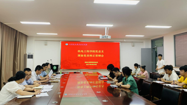 2021年6月29日下午,机电工程学院党总支在工科楼A400召开预备党员转正答辩会,会议由党总支书记熊伟同志主持。