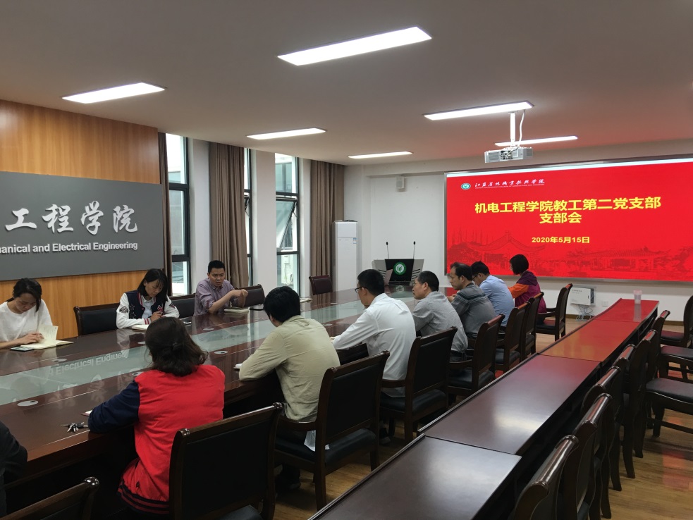 2020年5月15日,机电工程学院教工第二党支部在学院大会议室组织召开了支部会议。会议由机电工程学院党总支书记熊伟同志主持,支部全体党员参加。