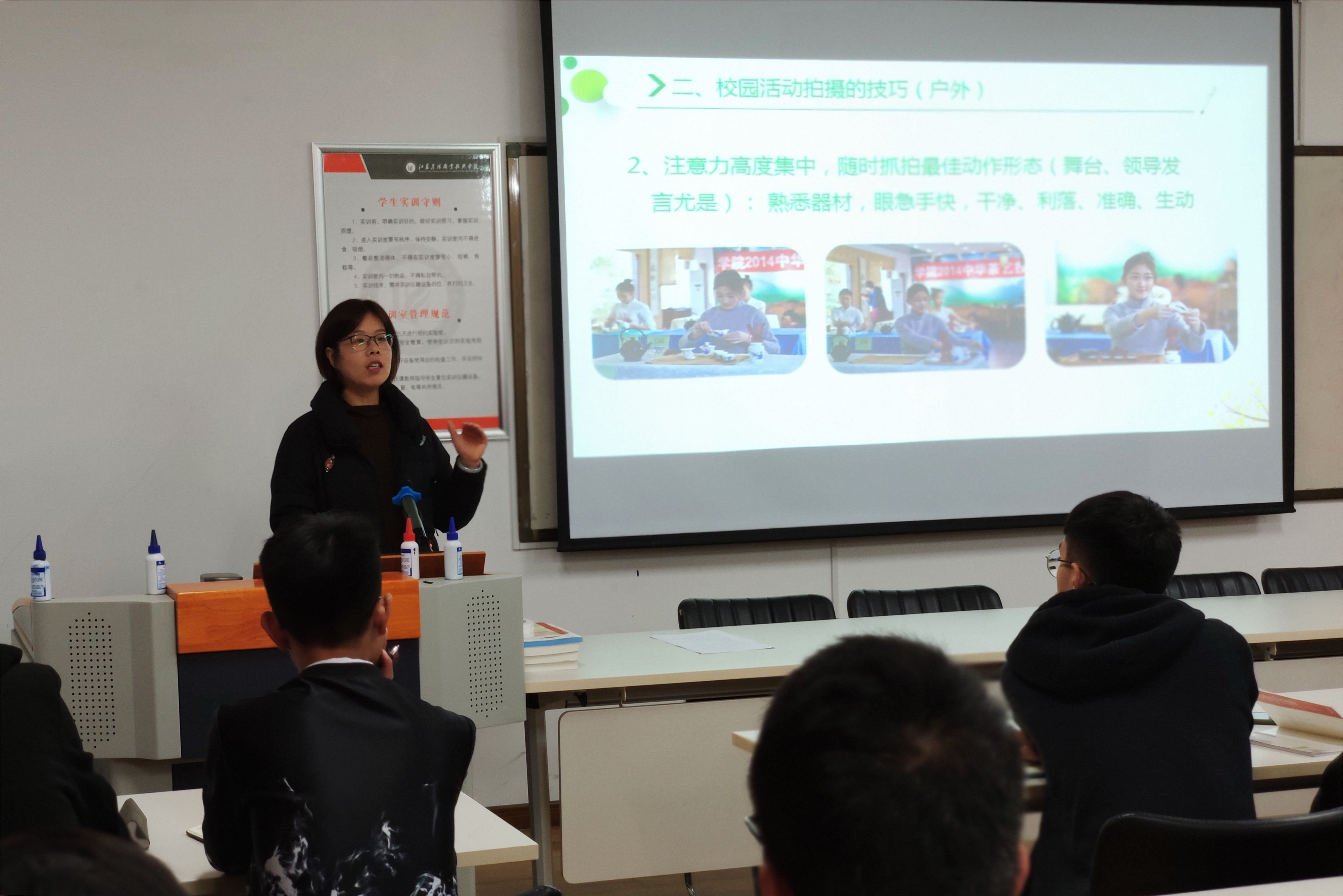 吴老师从为人处事之道与摄影写作的联系为切入点,介绍了校园拍摄的基本技巧,并结合自身工作实践,深入讲解了校园活动户外、室内拍摄要点和新闻材料撰写要求,吴老师以丰富的案例和图片素材,高度凝练的表达,让同学们受益匪浅。