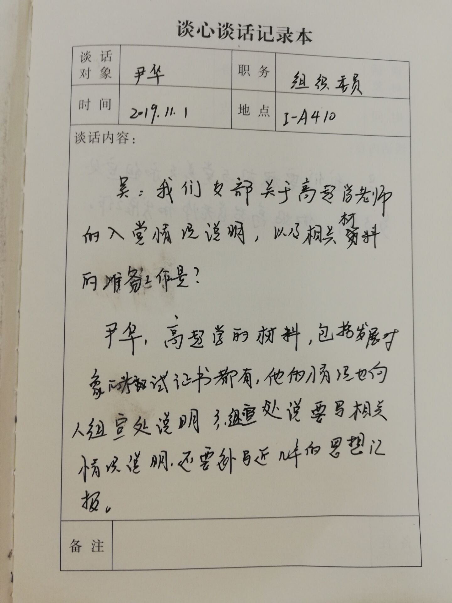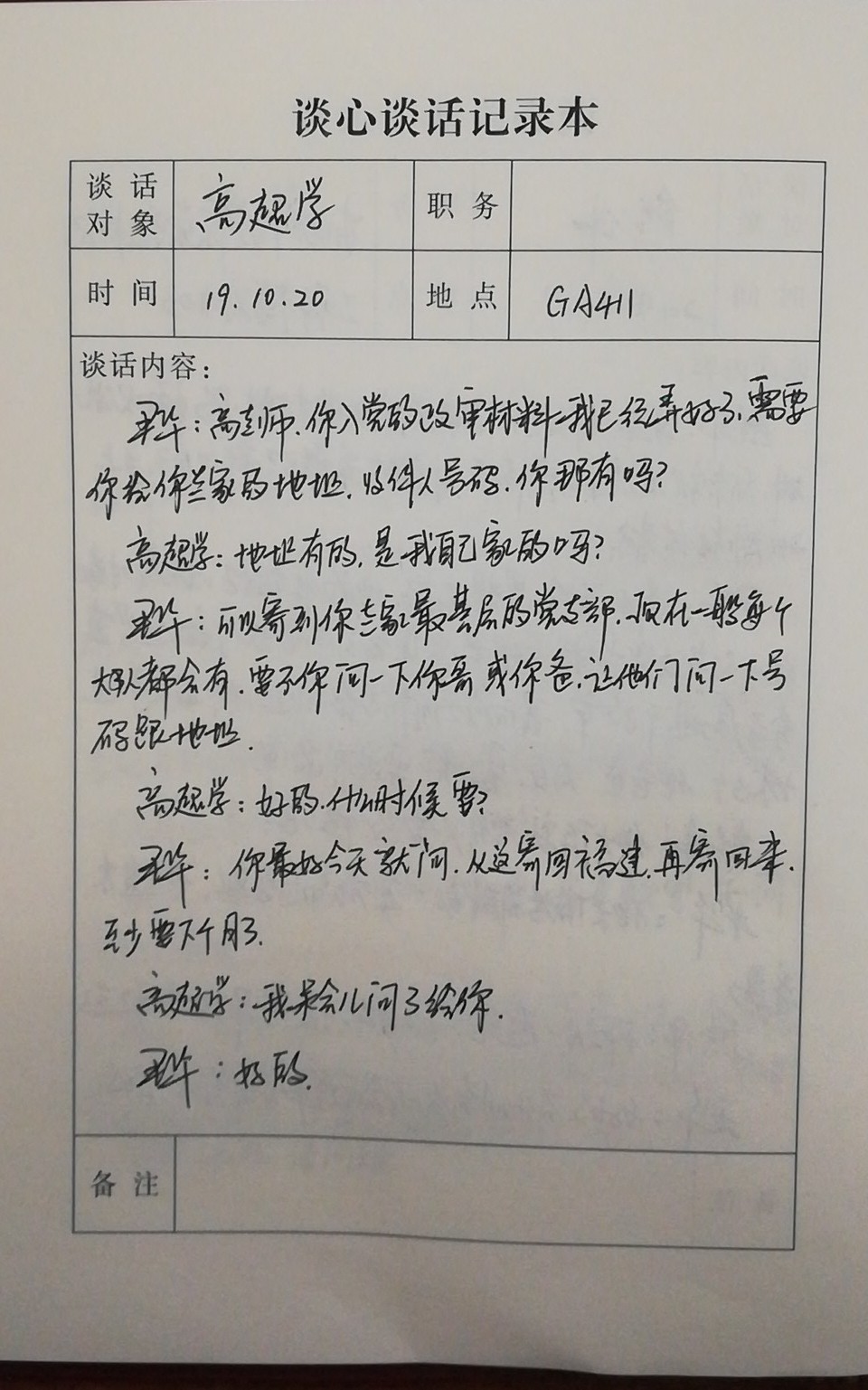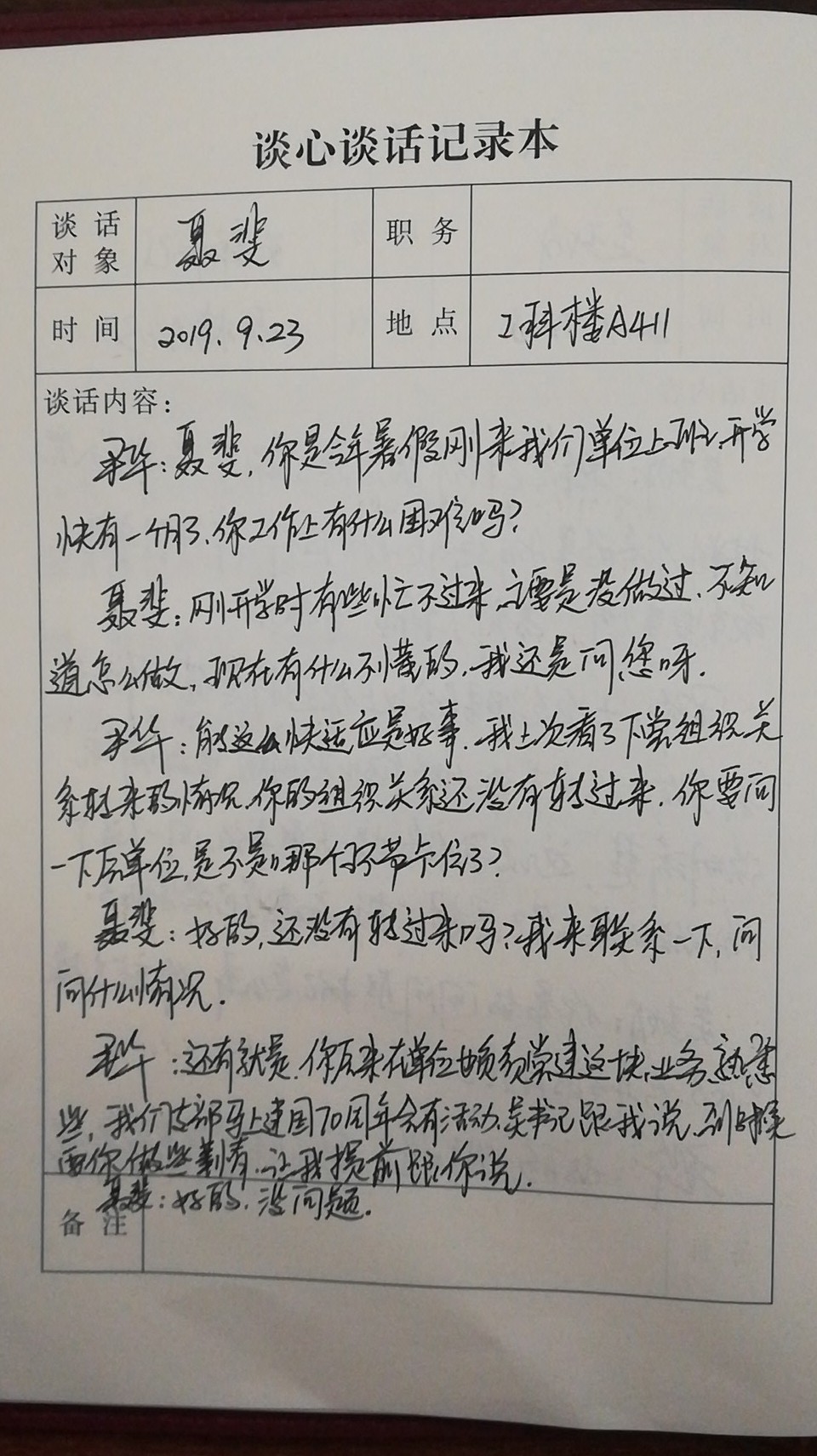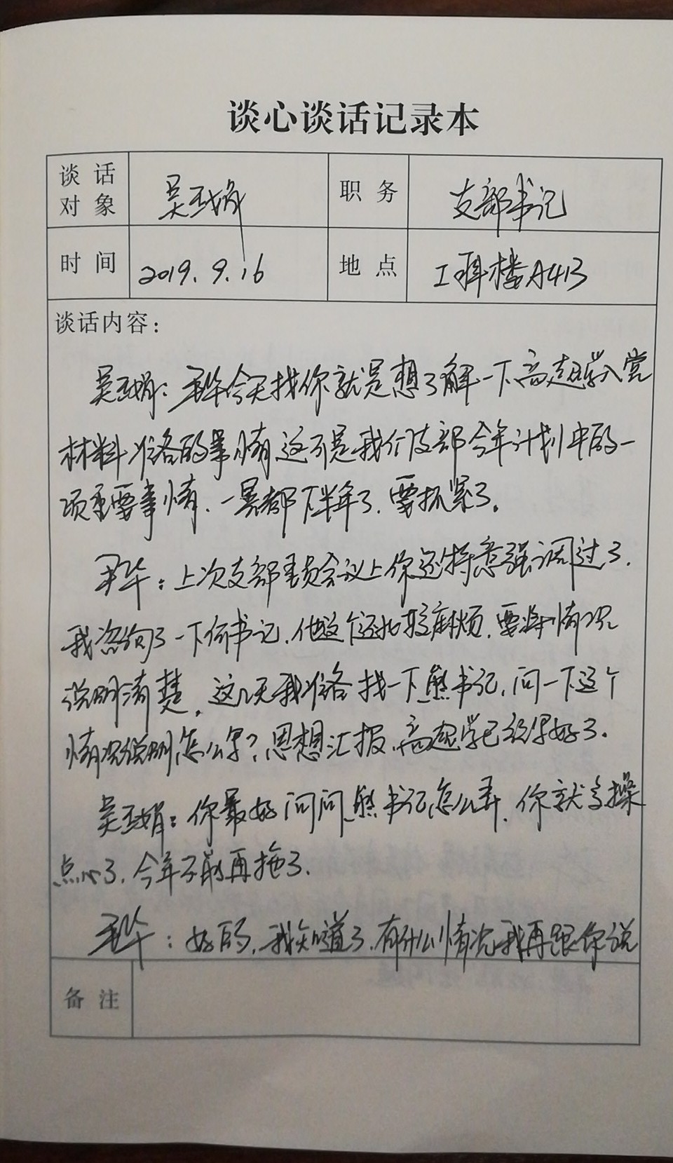 机电工程学院党总支一向关注党员思想意识问题,建立谈心谈话制度,总支与支部,支部与党员,支部与支部等形式多样,内容不限。以下是部分谈话记录:
