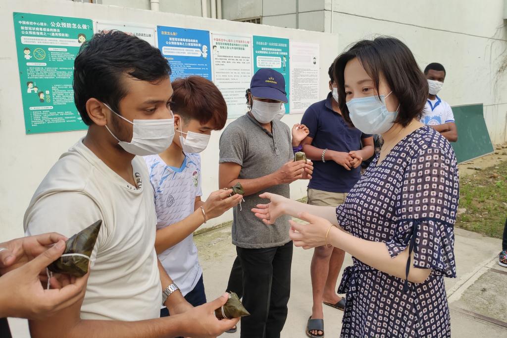 同学们通过诵读诗词,纪念爱国主义诗人屈原;分享家乡的端午习俗,了解节日的内涵;不少同学还提笔在明信片上写下对家人的思念,盖上邮戳寄给远方牵挂的人。机电工程学院为同学们准备了新鲜的粽子,所有参与活动的同学都可以在现场品到节日美味。学院党总支副书记李杨还前往留学生宿舍,为他们送去粽子,让异国学生感受端午佳节的粽香与浓情。