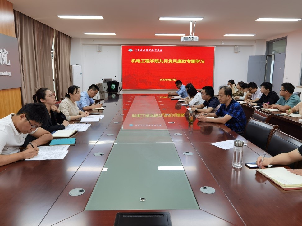 为不断增强党性观念和廉洁从教意识,9月23日下午,机电工程学院党总支举办了党风廉政教育学习活动。机电工程学院党总支副书记李杨同志主持,全体教职工参加。